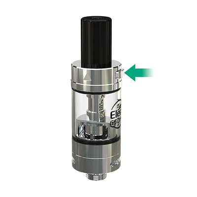 Le réservoir de 2ml, se remplit facilement par le haut. Une simple pression sur le bouton, permettra de faire coulisser le top-cap et d’accéder au trou de remplissage. Garanti sans fuite…